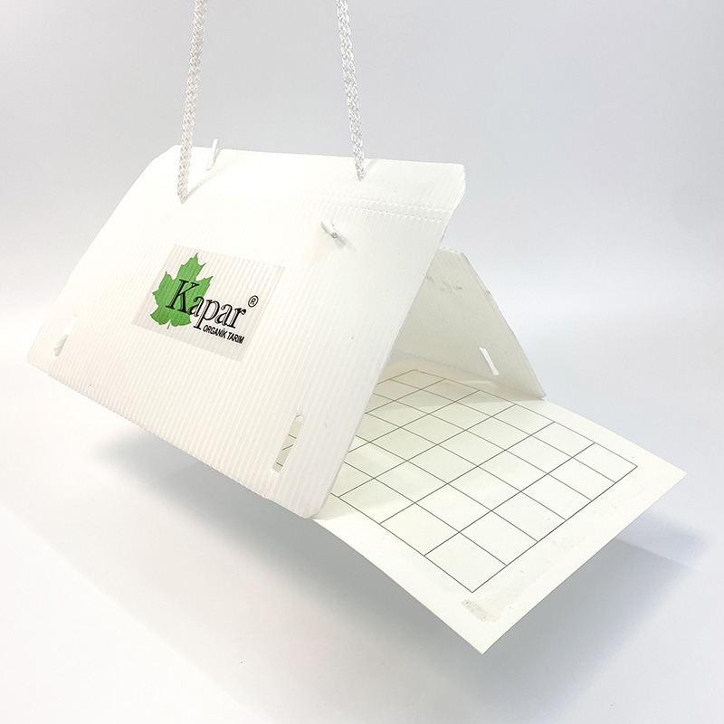 Kart yapısı ve yüzeyi renksiz yapışkan olan tuzakların kuvvetli böcek yakalama özelliği bulunmaktadır.